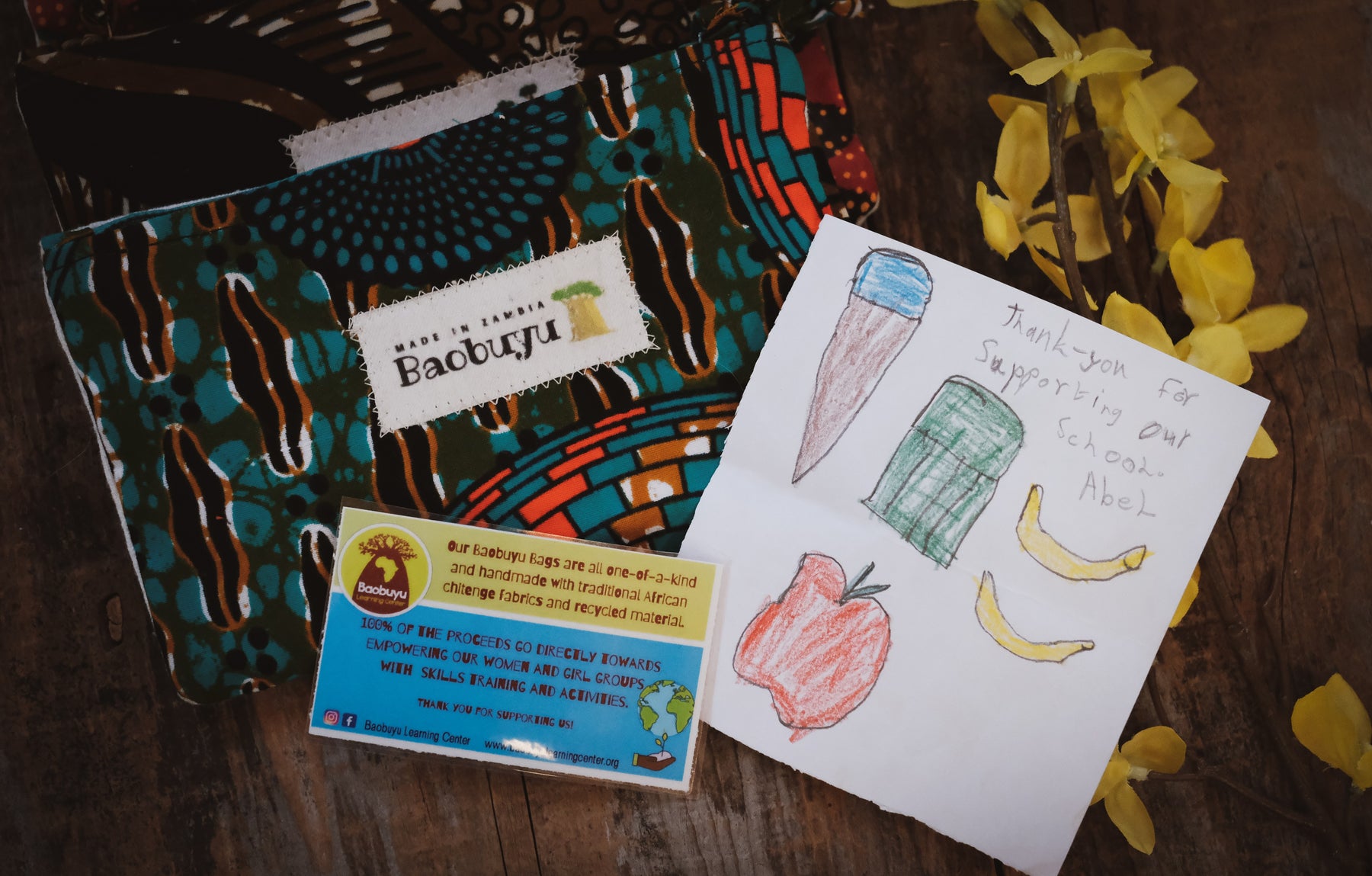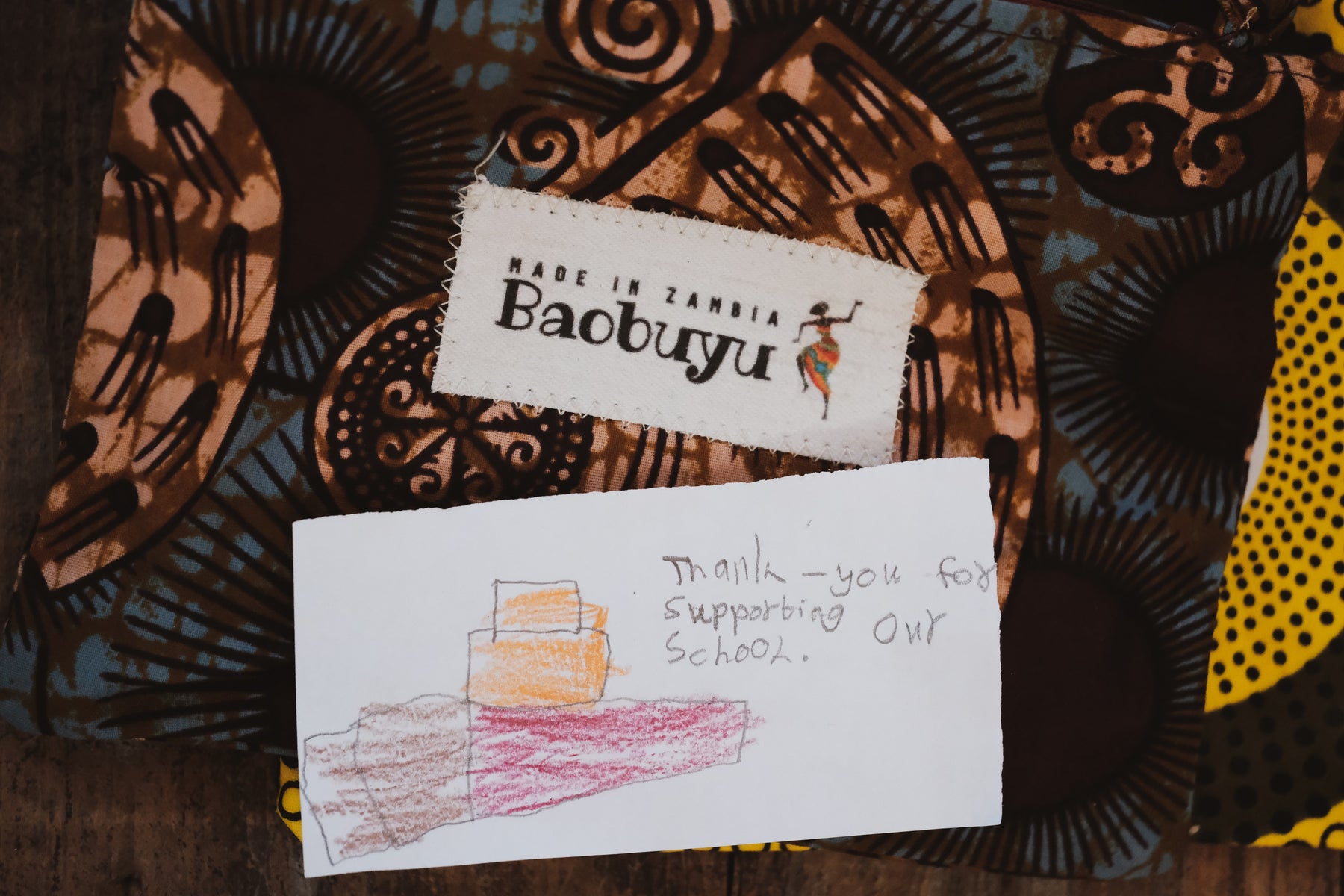 Each bag comes with a hand drawn note from a child who is receiving free education because of your purchase.