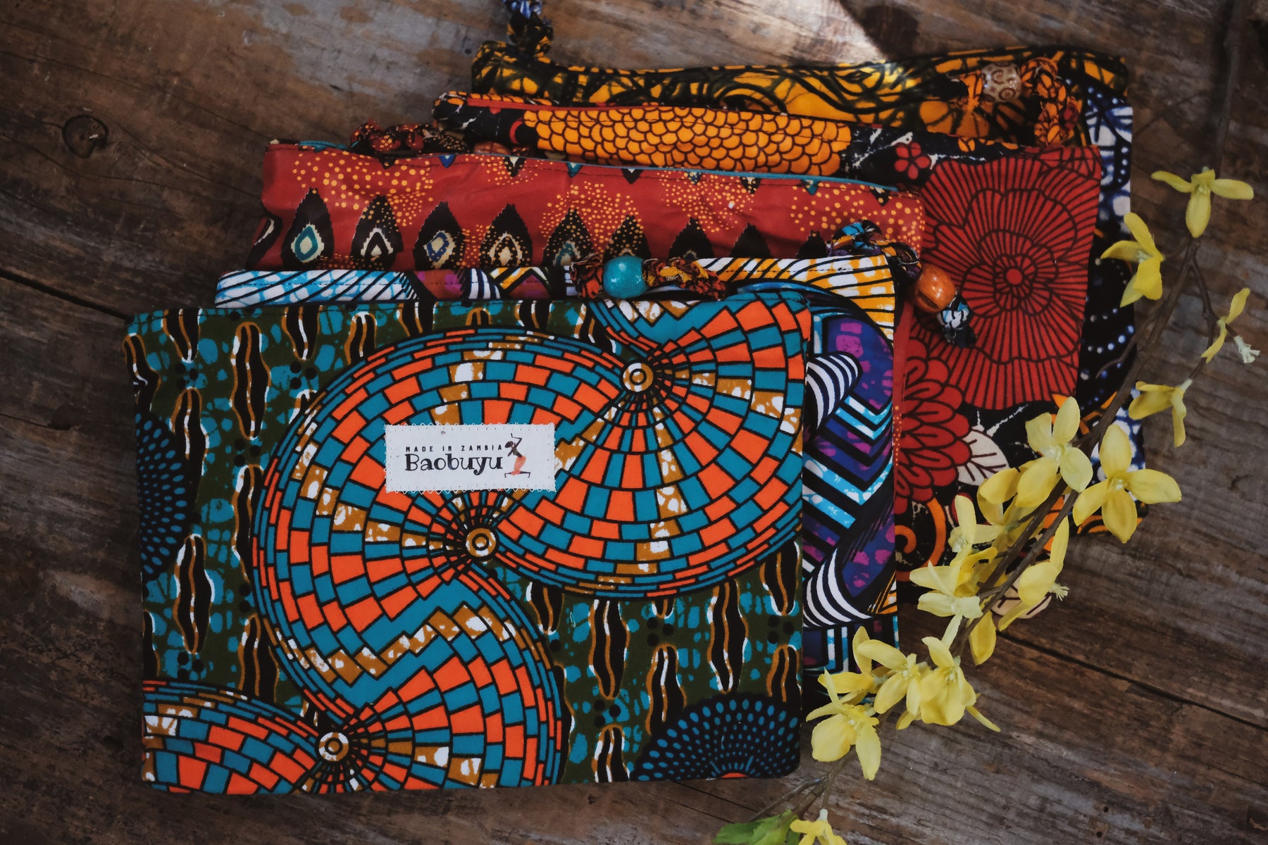 These bags were handcrafted for us by female artisans in Zambia who are part of a womens empowerment "sewing circle." By purchasing a bag from this collection, you are funding the women who created them as well as the primary school that houses the program.  Meet the artisans and learn more about the project at: