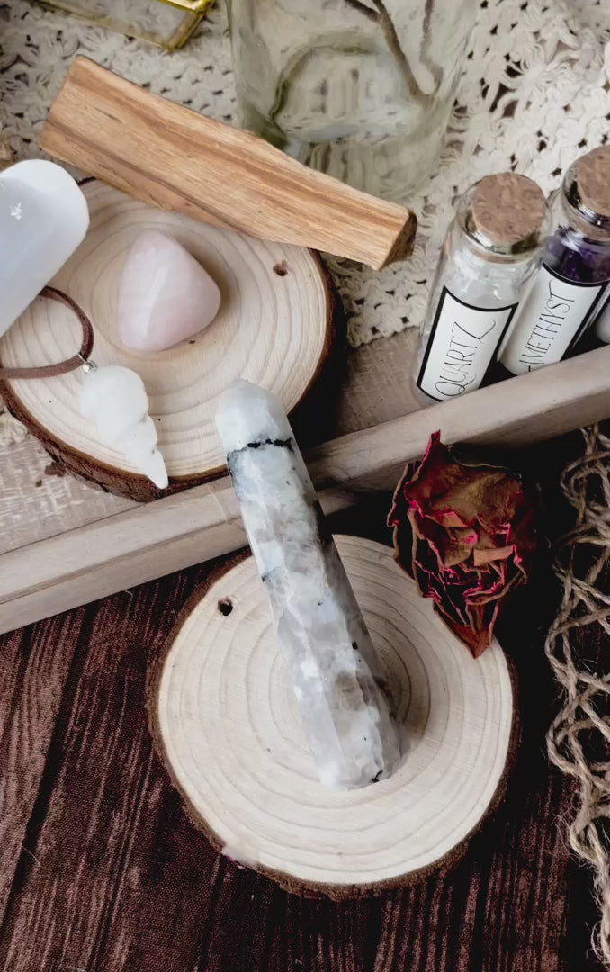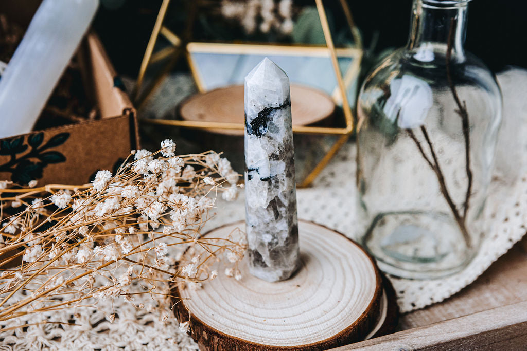 Psychically, rainbow moonstone is known to remove toxins from the body and assist in the absorption of essential vitamins and minerals. It aids those feeling overwhelmed or stressed by helping maintain a clear sense of grounding and centering. Rainbow moonstone is said to stimulate emotional balance, self-appreciation and increase one's intuitive abilities.