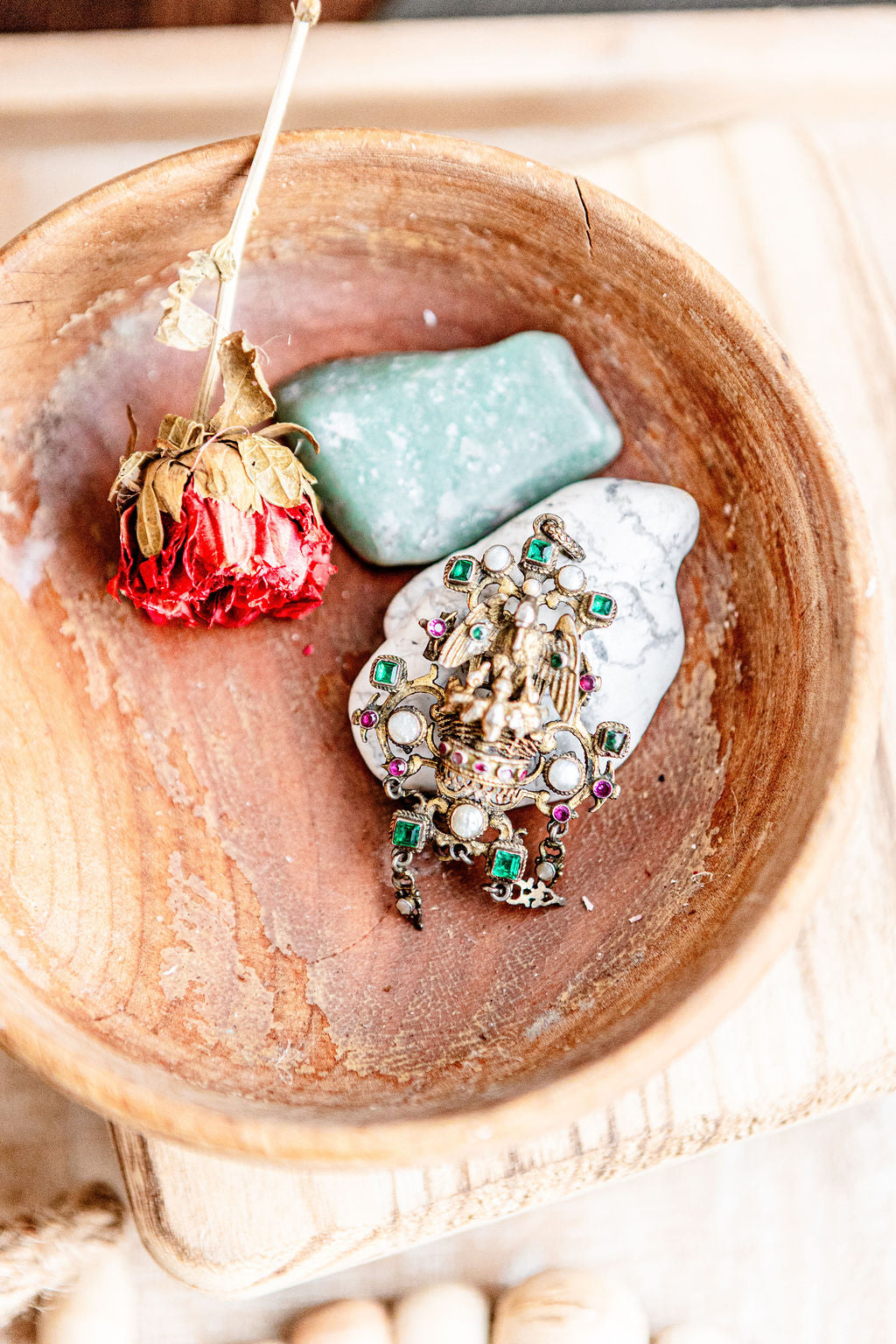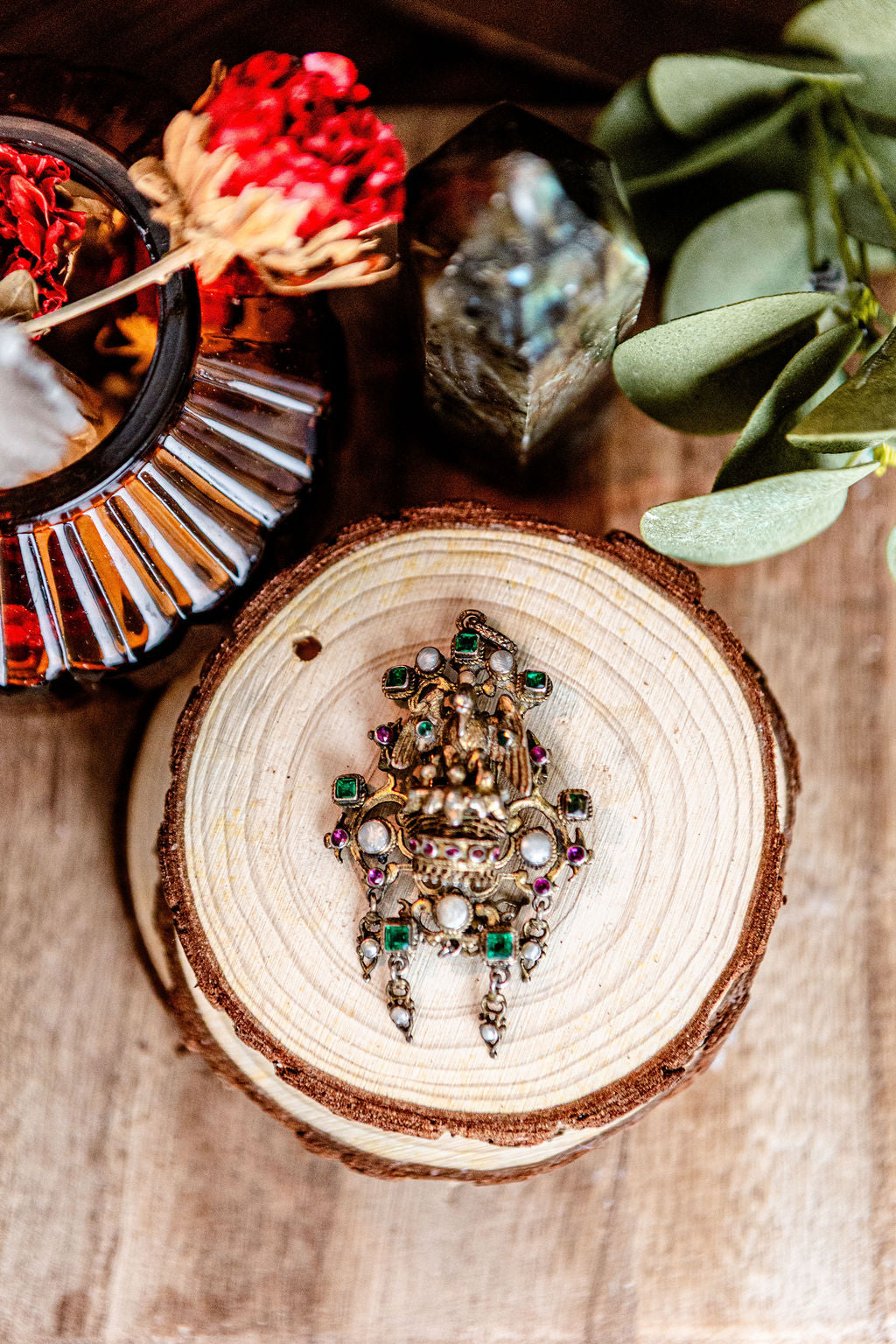 This style of jewelry emerged in the late 19th century and was favored for its romantic, old-world drama and high attention to symbolic detail. Each stone is individually set, creating a dimensional, sculptural presence that feels both ceremonial and wearable.