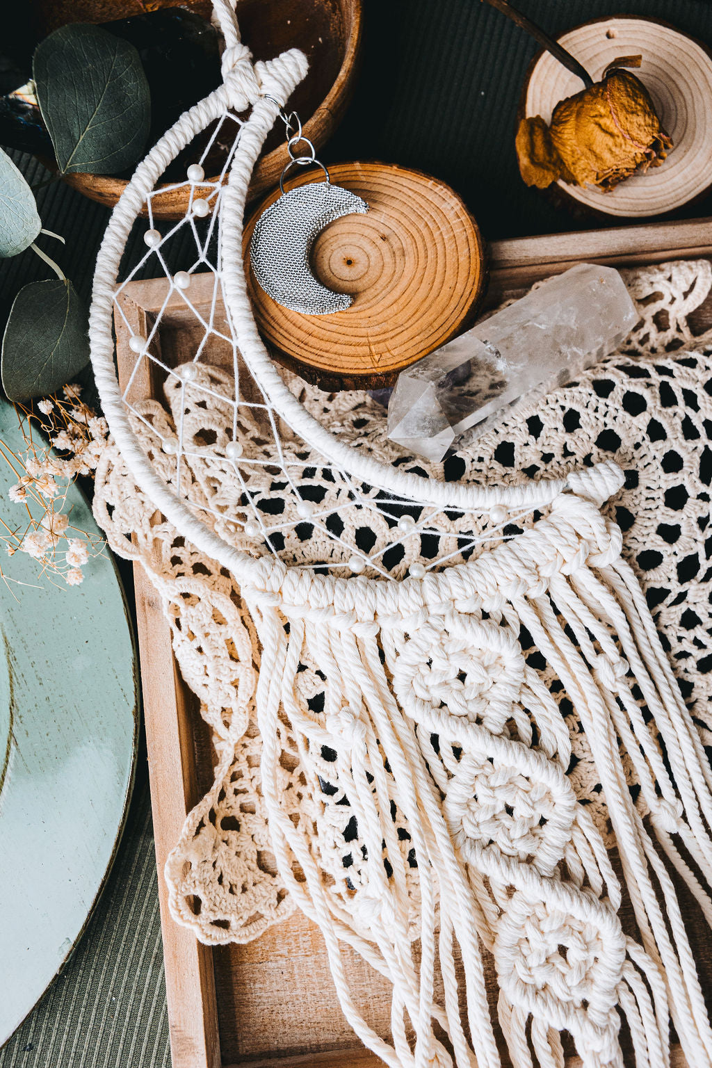 Adorn your home with our macramé wall hanging featuring a moon design. This piece comes with different variations, some have a moon and others have a star!