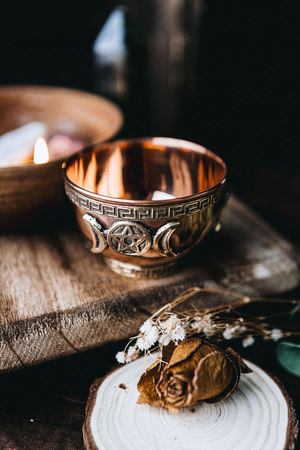 This 3-inch copper toned offering bowl features the Triple Moon symbol, perfect for any altar or sacred space. Ideal for holding small items like crystals, herbs, or offerings, the durable copper finish fits any décor. Whether you’re performing rituals, honoring the moon phases, or simply decorating, this bowl is a must-have!